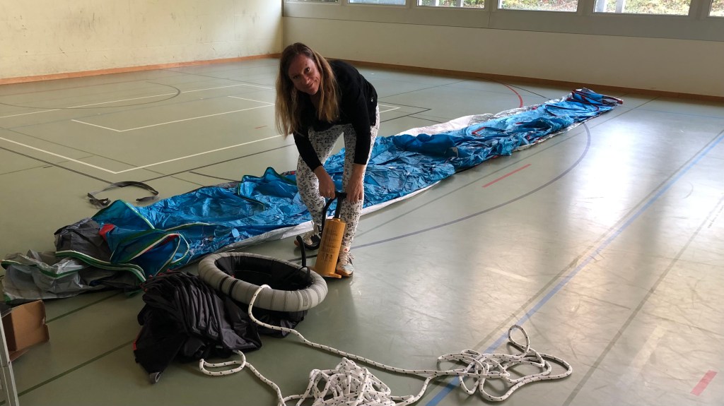Das Parasail (Leichtwindsegel) muss ausprobiert sein (Bild oben), auch wenn es nur auf dem Trockenen möglich ist. Das Zusammenstellen der Bordapotheke (2.Bild oben) war ein grösseres Projekt als gedacht. Wir wurden sehr gut unterstützt und beraten durch unsere Hausärztin. Genügend Antibiotika und Schmerzmittel sind verstaut, um auf Notfälle vorbereitet zu sein.