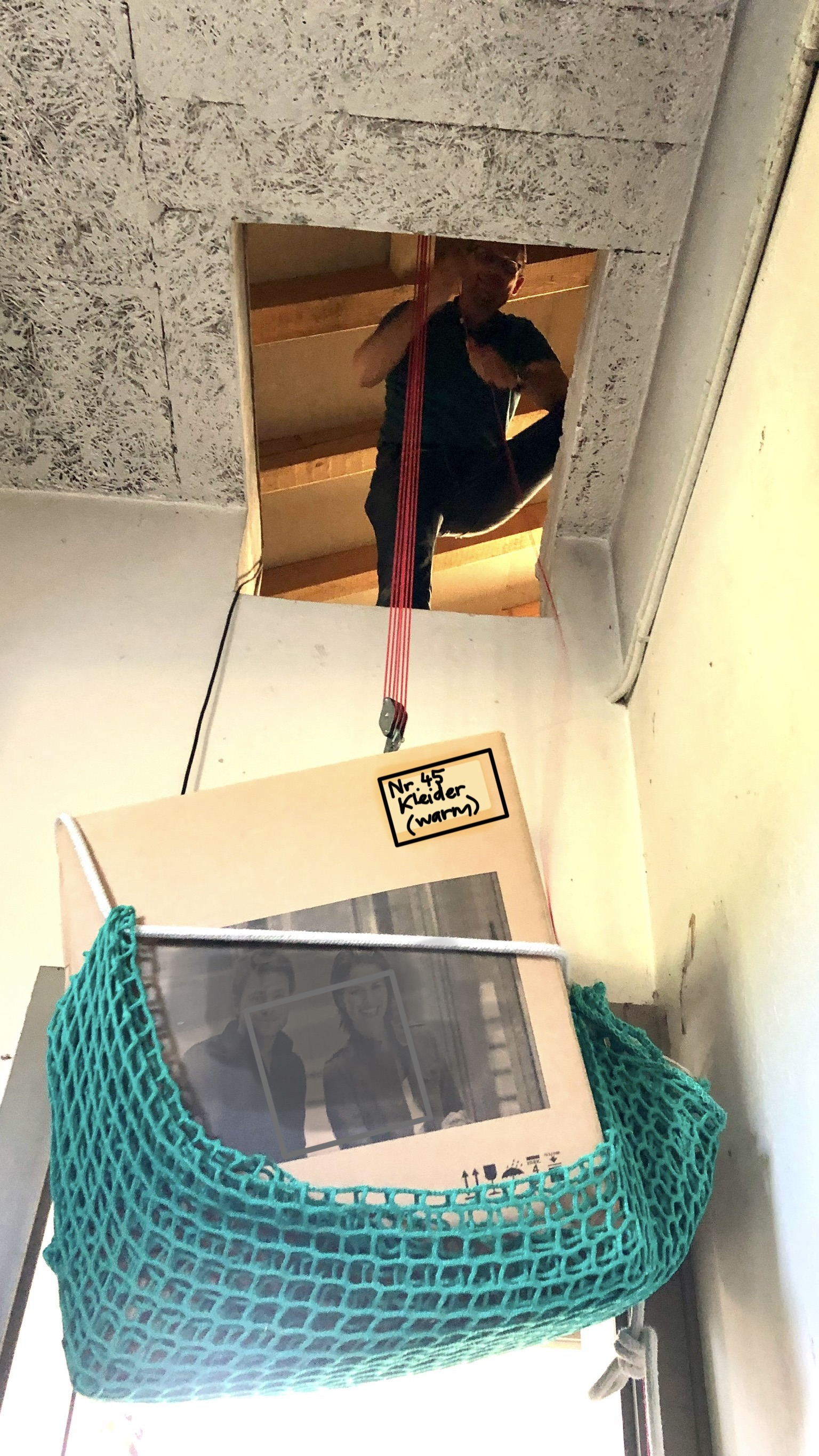 Seit diesem Mai sind wir nonstop irgend etwas am Vorbereiten, sei dies administrativ oder praktisch. Wir räumten die ganze Wohnung, inklusive Werkstatt. Unsere Kisten und ein paar wenige Möbel dürfen wir bei Freunden unter dem Dach ihrer Garage lagern (1. Bild unten: Flaschenzug zum „Lagerraum“). Auch das Rückentraining „Cantienica“ bei Doris Rentsch in Burgdorf gehörte zu den Vorbereitungen (2. Bild unten). Seitdem wir regelmässig trainieren haben wir kaum noch Schmerzen.