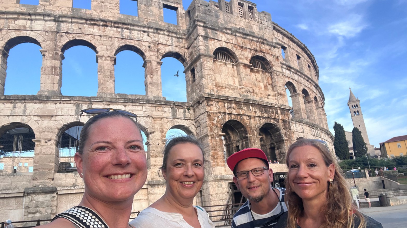 Es hilft uns, dass uns während den ersten vier Tagen zwei Freundinnen begleiten. Sie brachten uns mit ihrem Auto nach Muggia, denn unseren Bus haben wir in der Schweiz gelassen und bei einem Freund einstellen dürfen. Während diesem Wochenende in der Schweiz feierten wir Matthias’ Mutters 80igster Geburtstag.