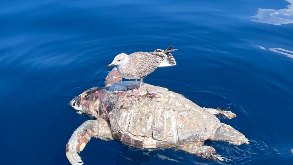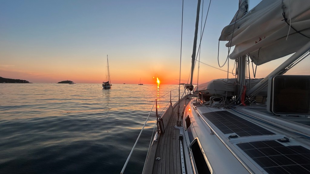 Während dieser ersten Woche unserer Auszeit werden wir schon riesig beschenkt. Immer wieder sichten wir Delfine, eine Schildkröte und viele schöne Sonnenuntergänge. Leider begegnen wir auch einer toten Schildkröte und sehr vielen Algen. Das Meer ist extrem warm, oft ist das Baden gar keine Abkühlung mehr.