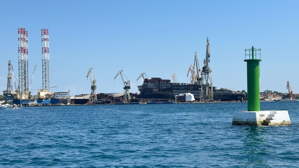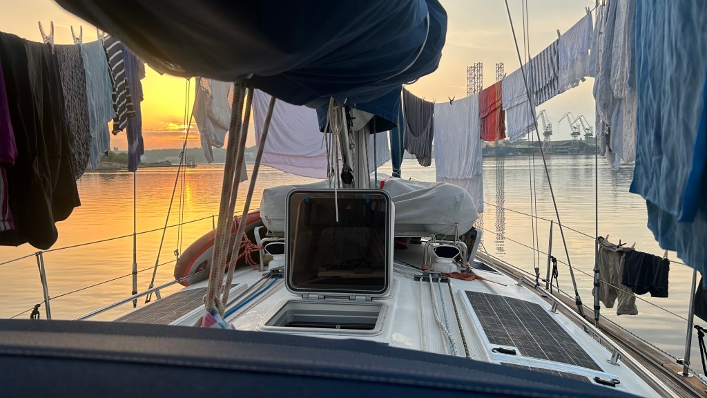 Alltag auf dem Schiff: Während wir im Hafen von Pula die Schlechtwetterzelle vorüberziehen lassen, nutzen wir die Zeit. Es ist immer noch erdrückend heiss…