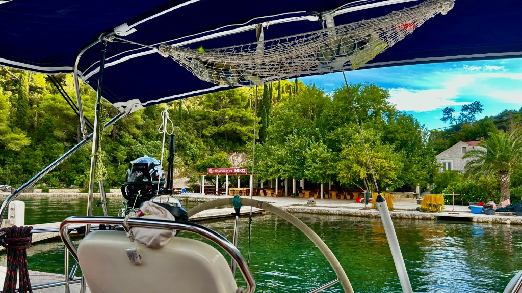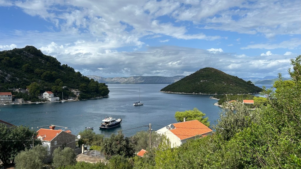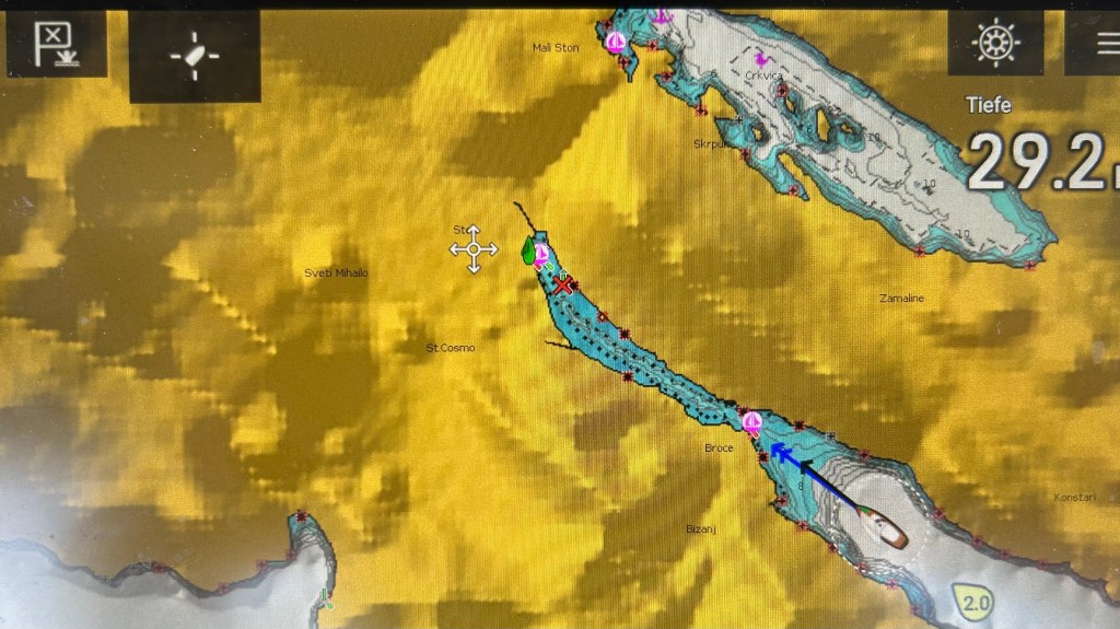 Liebe Freunde, die uns viel geholfen haben bei der Ausrüstung von genug Strom mit Solarpanelen. Sie segelten eine Woche mit uns. Wir steuern verschiedene Buchten rund um Dubrovnik an. Diese kleinen Inseln werden Elaphiten genannt.