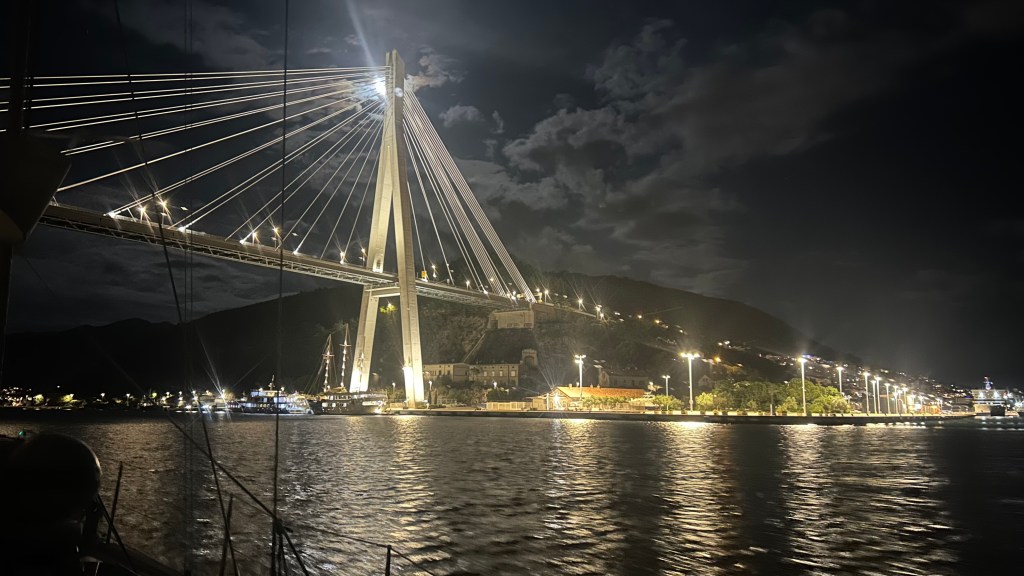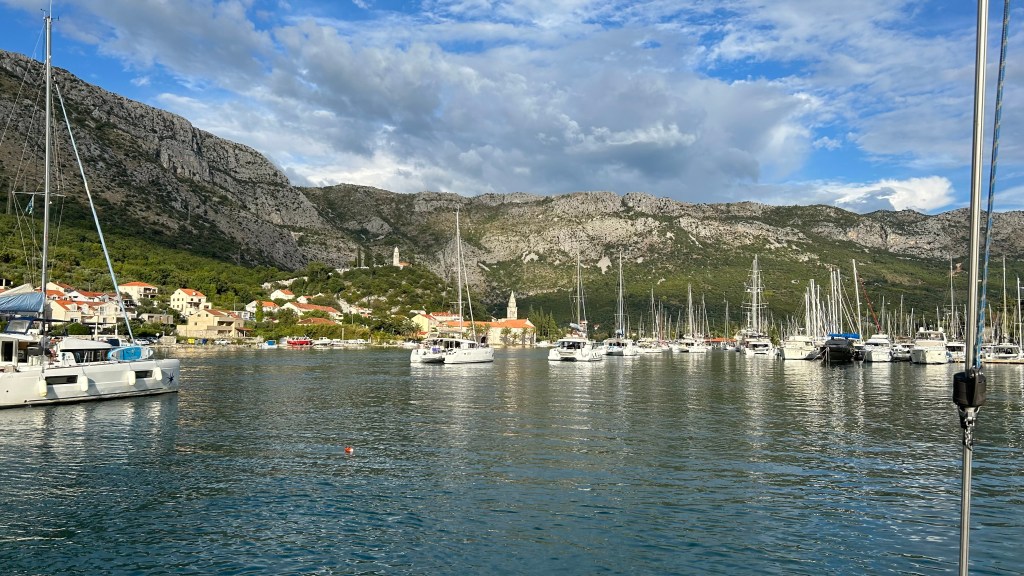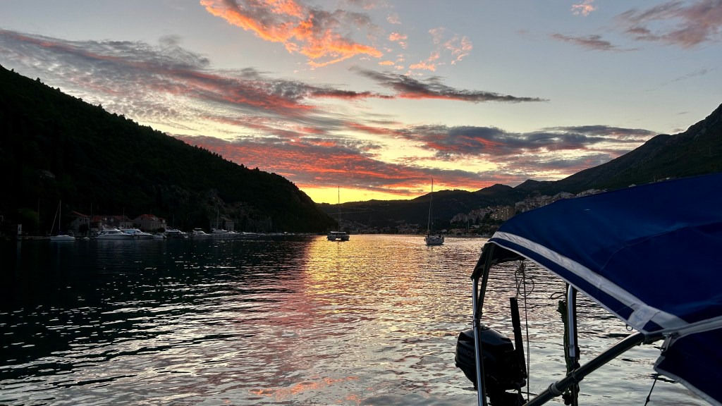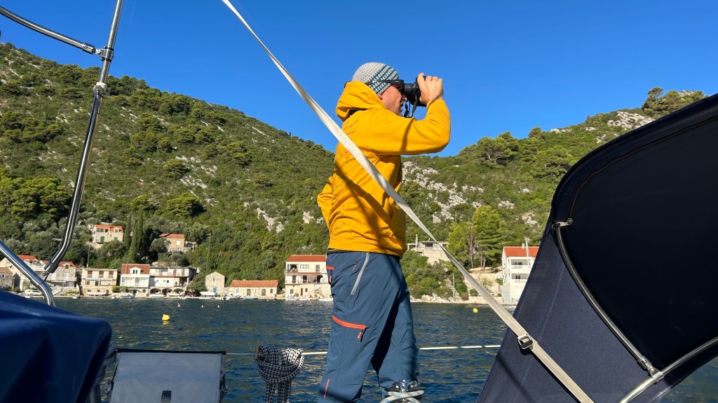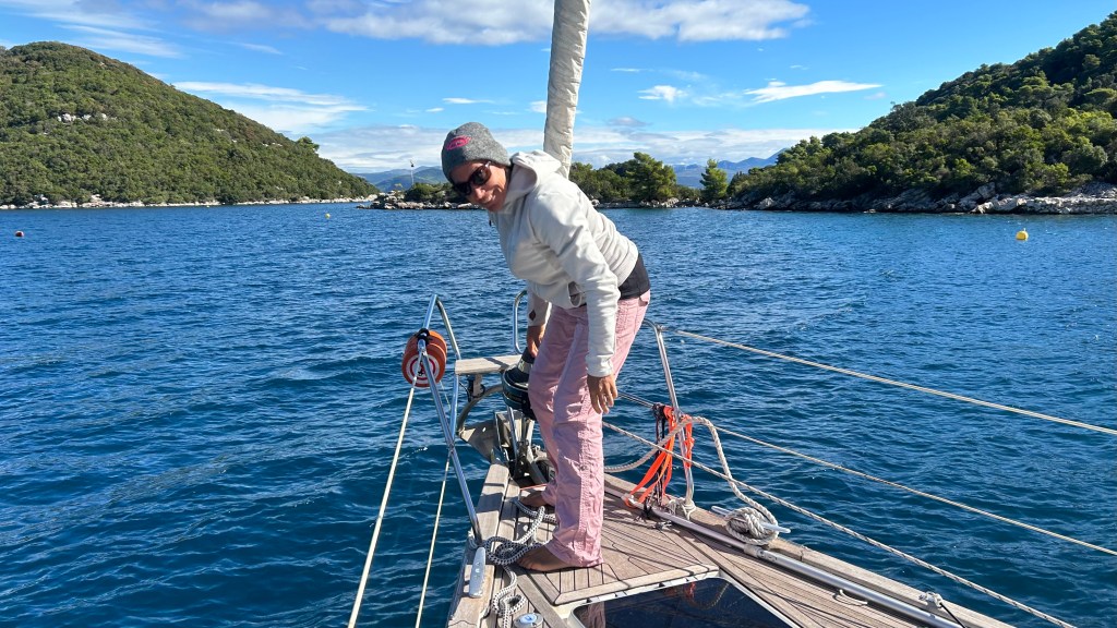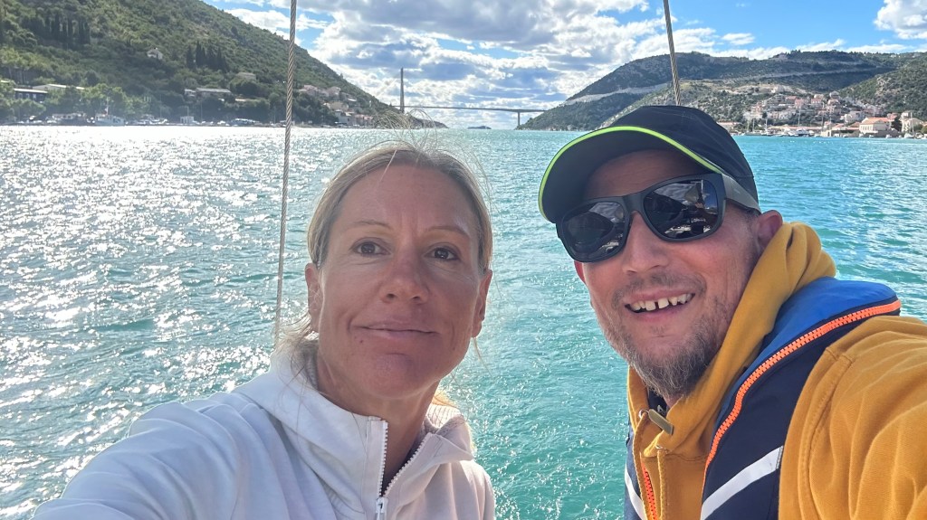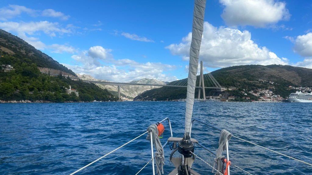 Zu Beginn dieser Etappe hatten wir gleich mehrere Herausforderungen zu meistern. Bei der Genua riss hinten der Saum ab (Achterliek). Wir konnten das Segel in Dubrovnik dem Segelmacher bringen und er brachte es uns nach nur einem Tag wieder geflickt zurück. So mussten wir die nächste Etappe nicht verschieben oder umplanen. Danach klemmte die Vorrichtung, um das Segel aufzurollen (Furlex). Der Techniker hatte keine Zeit, wir hätten zwei Tage warten müssen. Am Steg jedoch bot sich Miro an, uns zu helfen. Er und Matthias nahmen die Rolle auseinander, lösten viele Schrauben… Sie konnten das Problem nicht lösen, bis am Schluss Miro per Zufall bemerkte, dass die Rolle nicht richtig montiert war. Zwei Schrauben waren nicht in den vorgesehenen Löchern festgeschraubt. Die Rolle funktionierte wieder einwandfrei! Gleich nach diesem Ereignis wollten wir den Wassertank mit frischem Wasser füllen. Die Anzeige reagierte nicht und mit Schrecken stellten wir fest, dass das Wasser nicht in den Tank, sondern in die vorderste Kammer des Schiffes lief, weil der Frischwasserschlauch abgerissen war! Ein Tag Arbeit folgte, mit herauspumpen und trocknen… Wir lernten auf unserer Reise sehr viele hilfsbereite Menschen kennen. Kaum ist man in einem Hafen, beginnt das Gespräch. Das waren deshalb in allem Mühsamen sehr positive Erfahrungen.
