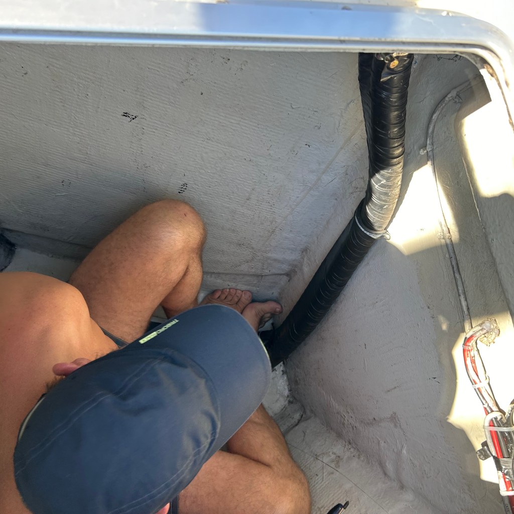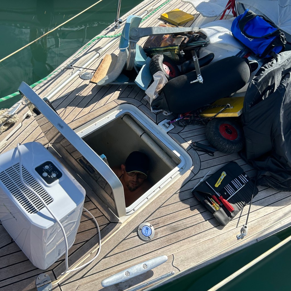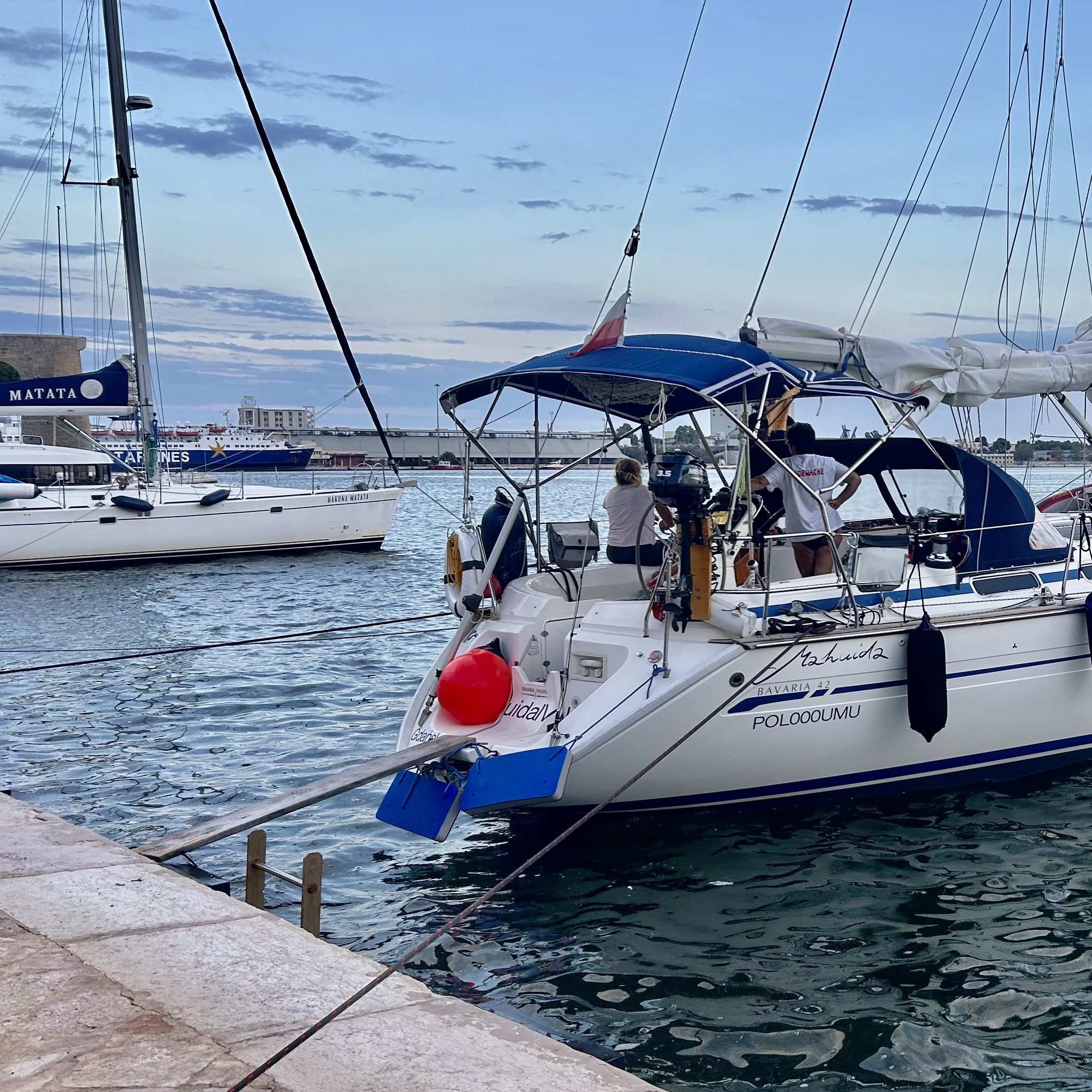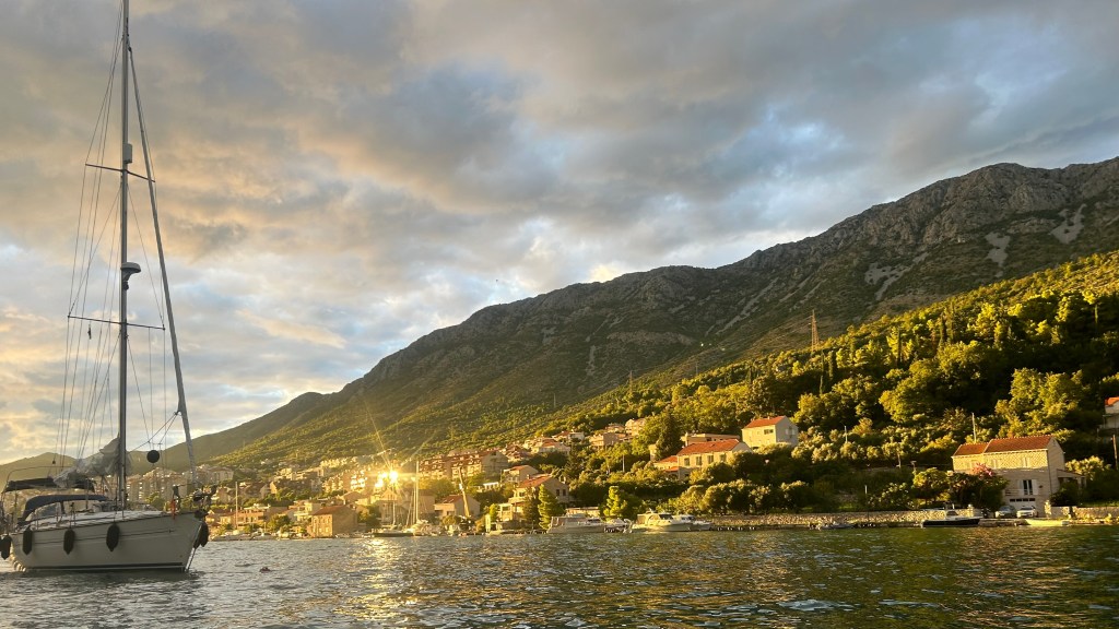Zu Beginn dieser Etappe hatten wir gleich mehrere Herausforderungen zu meistern. Bei der Genua riss hinten der Saum ab (Achterliek). Wir konnten das Segel in Dubrovnik dem Segelmacher bringen und er brachte es uns nach nur einem Tag wieder geflickt zurück. So mussten wir die nächste Etappe nicht verschieben oder umplanen. Danach klemmte die Vorrichtung, um das Segel aufzurollen (Furlex). Der Techniker hatte keine Zeit, wir hätten zwei Tage warten müssen. Am Steg jedoch bot sich Miro an, uns zu helfen. Er und Matthias nahmen die Rolle auseinander, lösten viele Schrauben… Sie konnten das Problem nicht lösen, bis am Schluss Miro per Zufall bemerkte, dass die Rolle nicht richtig montiert war. Zwei Schrauben waren nicht in den vorgesehenen Löchern festgeschraubt. Die Rolle funktionierte wieder einwandfrei! Gleich nach diesem Ereignis wollten wir den Wassertank mit frischem Wasser füllen. Die Anzeige reagierte nicht und mit Schrecken stellten wir fest, dass das Wasser nicht in den Tank, sondern in die vorderste Kammer des Schiffes lief, weil der Frischwasserschlauch abgerissen war! Ein Tag Arbeit folgte, mit herauspumpen und trocknen… Wir lernten auf unserer Reise sehr viele hilfsbereite Menschen kennen. Kaum ist man in einem Hafen, beginnt das Gespräch. Das waren deshalb in allem Mühsamen sehr positive Erfahrungen.