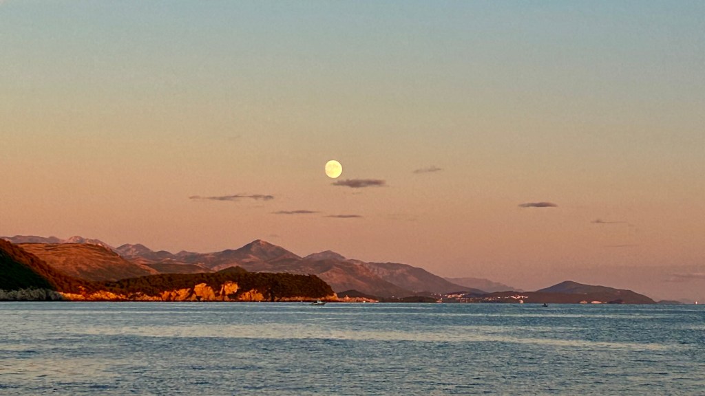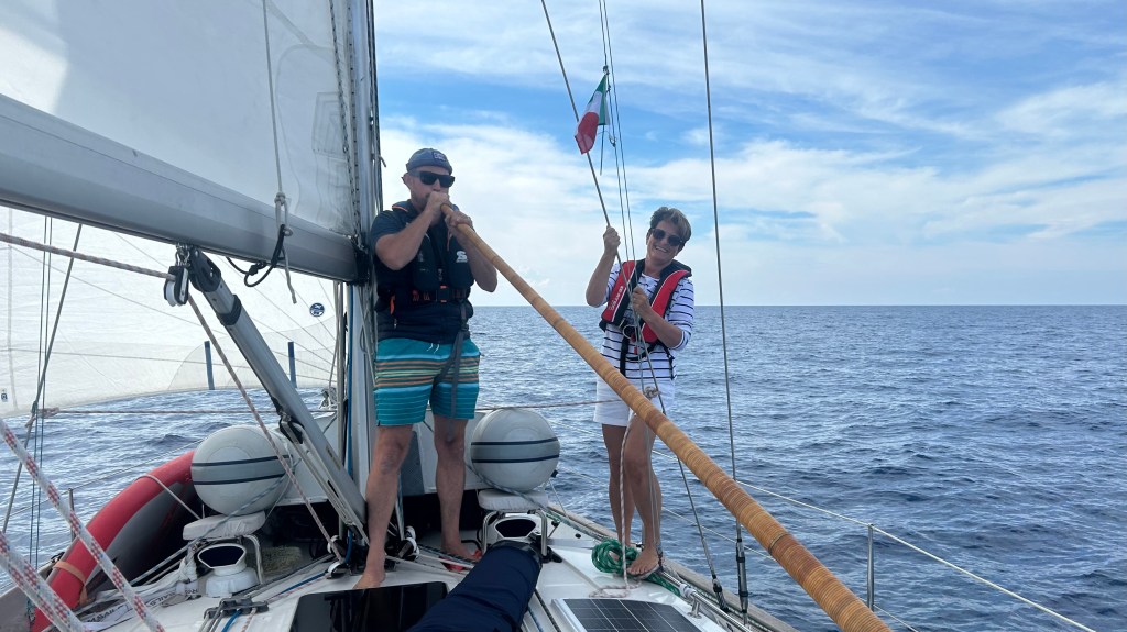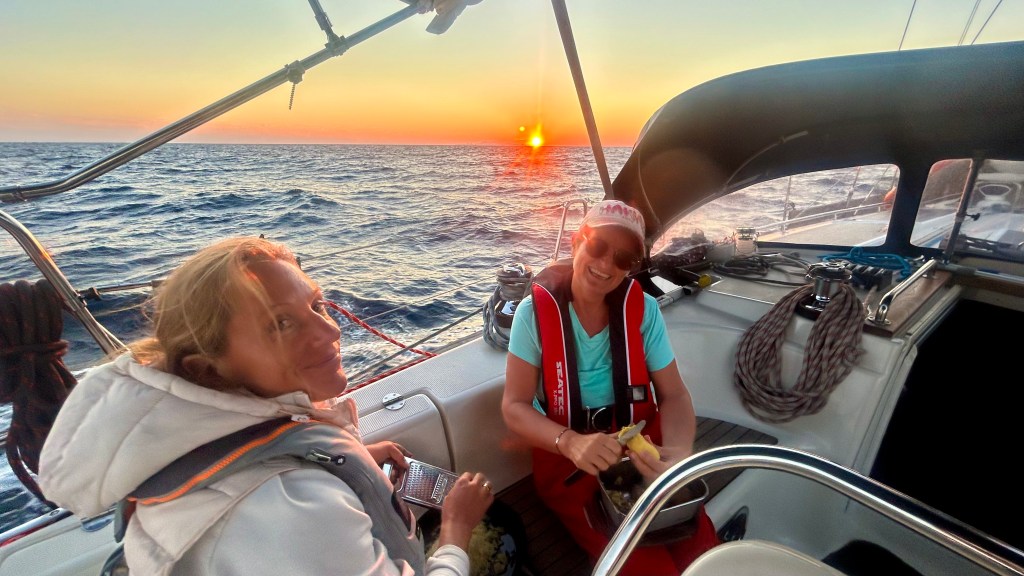 Seit Dubrovnik sind wir mit Gästen unterwegs. Es ist schön, miteinander zu segeln, ob in brenzligen Momenten oder in entspannten. In hohen Wellen, wo man ganz konzentriert ist und es still wird, aber auch in Gesprächen am Abend oder während ruhigen Stunden auf dem Meer, dies sind alles wertvolle Momente.