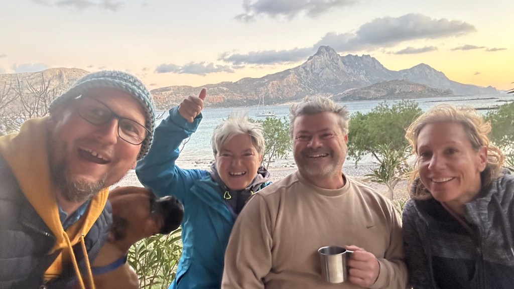 Im letzten Blog „Winter in Kreta“ haben wir bereits das winterliche Wetter auf den griechischen Inseln beschrieben. Es ging so ähnlich weiter. Ab und zu fanden wir ein Wetterfenster, so dass wir am 12. Januar 25 in Zakynthos ankamen. Wir blieben jeweils in einer Bucht oder einem kleinen Hafen, bis das Wetter und die Windrichtung einigermassen stimmten und segelten dann weiter. Dies ging sehr gut, wir hatten genügend Zeit und müssen erst ende Januar in Zakynthos sein, um neue Gäste zu empfangen.