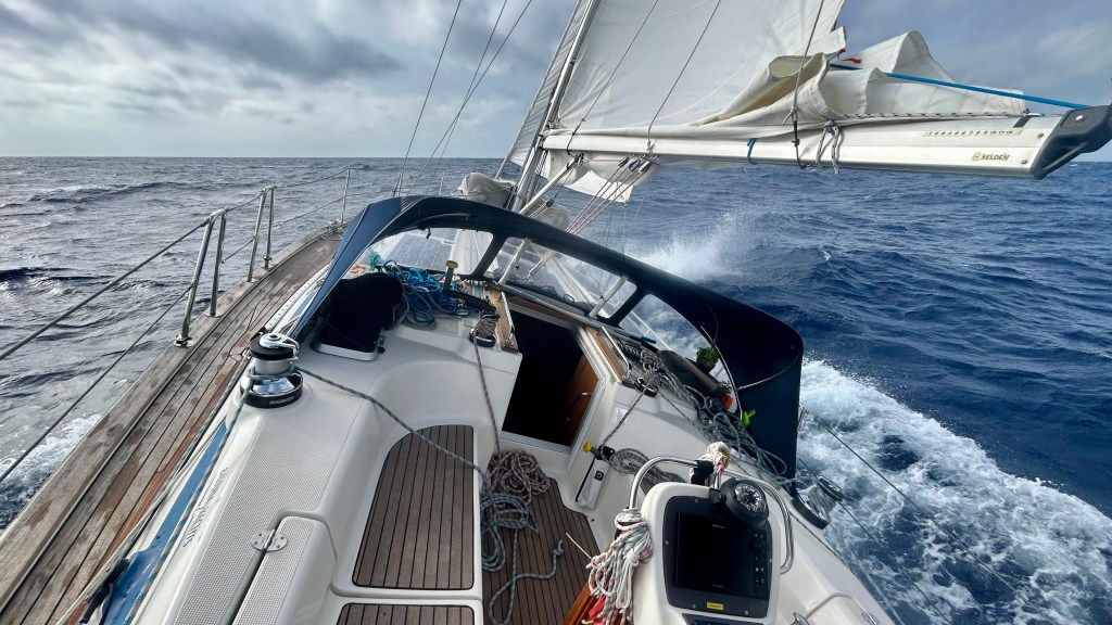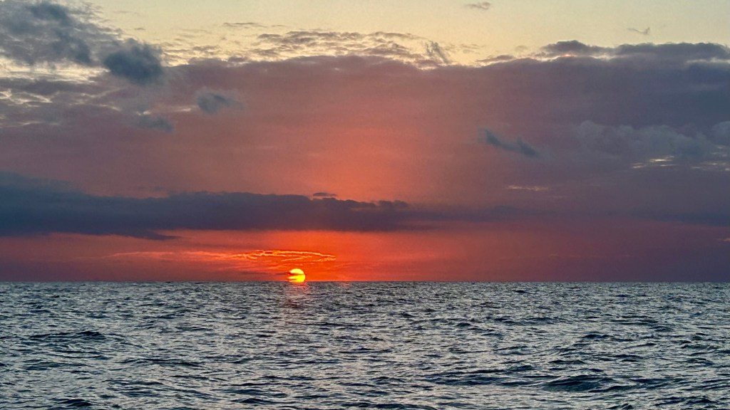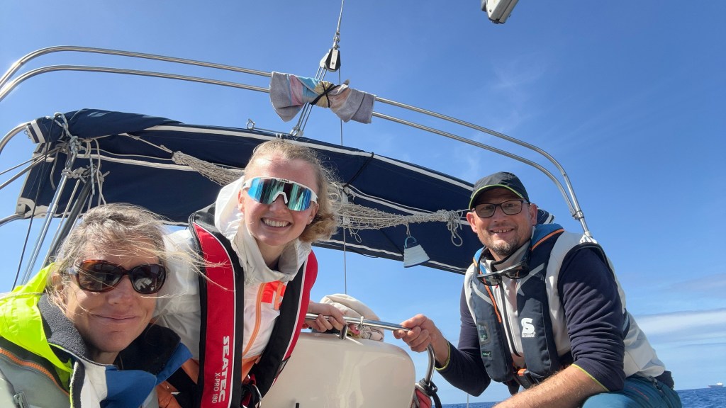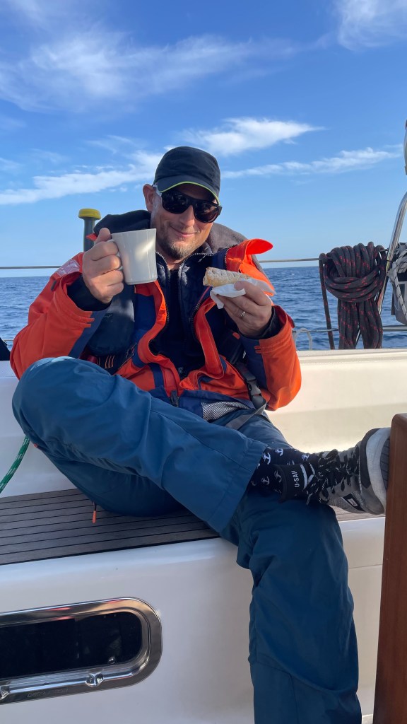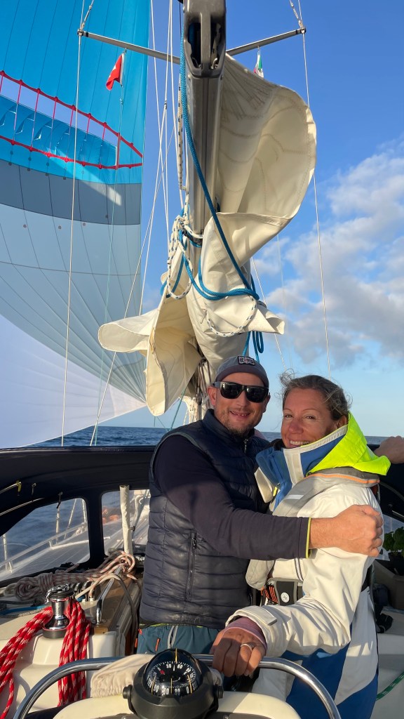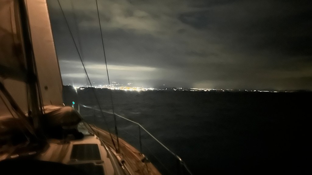 Wir rechneten nicht mit vielen tunesischen Fischern vor Pantelleria. Sie lazerten uns mit grünem Licht an. Kurz darauf der Funkspruch: „Mahuida IV“. Die tunesische Navy funkte uns an, wir seien im Netz! Matthias meinte, nein, wir haben 5 Knoten Fahrt, kann nicht sein. So behielten wir Kurs. Plötzlich schreit Anna: Hier das Netz! Matthias reagierte in einem Bruchteil einer Sekunde, riss das Steuer herum und wir streiften mit dem Heck grad noch die kleinen roten Bälle des Fischernetzes. Wieder hin und her funken mit der Navy. Im Nachhinein begriffen wir, dass die Fischer über die Navy kommunizierten, da sie kein Englisch sprechen. Die Navy hingegen sah ja das Fischernetz nicht auf dem AIS, weshalb sie uns nach ein paar Minuten wiederholt sagten, wir können nun unseren Kurs wieder aufnehmen. Doch wir befanden uns immer noch im Netz! Beim zweiten Stopp kurz vor dem Fischernetz drehte Matthias nur noch so viel ab, bis wir dem Fischernetz folgen konnten und dann schliesslich nach 1-2 Meilen den Ausgang fanden! Wir hatten einmal mehr viel Bewahrung erlebt. Hätte Anna das Netz nicht gesehen und Matthias nicht sofort beigedreht, hätten wir uns in der Morgendämmerung darin verfangen. In Europa sind Fischernetze in der Nacht mit einem kleinen Licht gekennzeichnet und die Netze befinden sich unter der Wasseroberfläche. Man kann mit dem Schiff also problemlos in 4 Meter Entfernung von der Fischernetzboje das Netz passieren. Dies ist anscheinend in Tunesien anders…