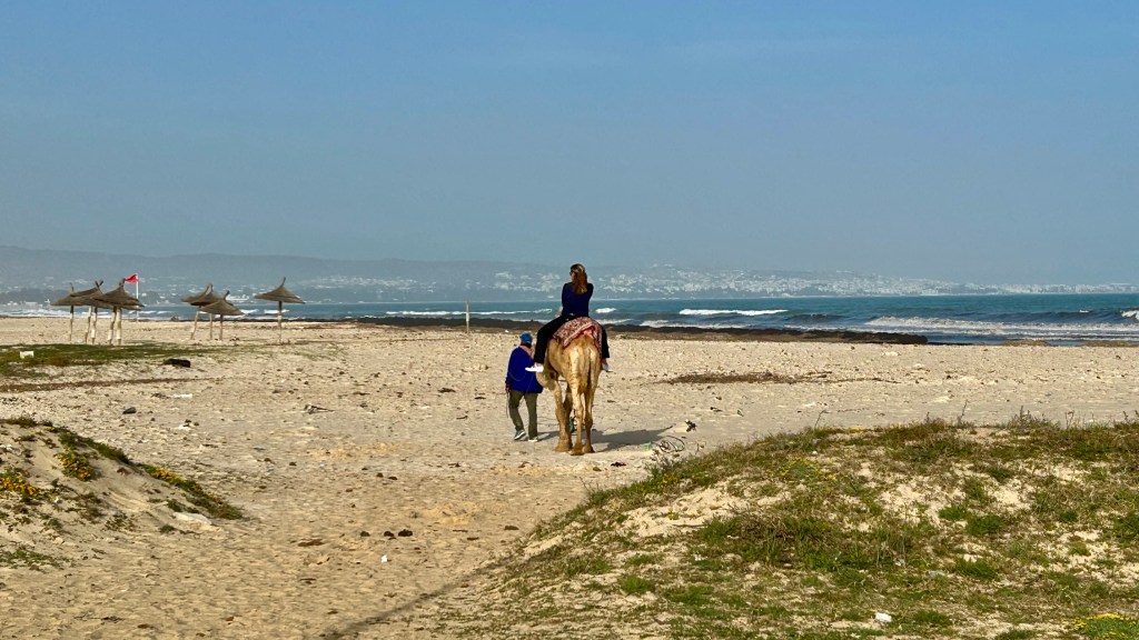 Leere Hotelkomplexe, der ungewollte Kamelritt, Gemüseeinkauf und die Tunesische Flagge.