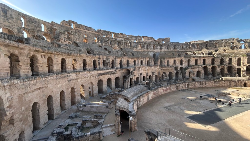 El Jem, ein sehr gut erhaltenes Amphitheater, eines der letzten, das die Römer bauten.