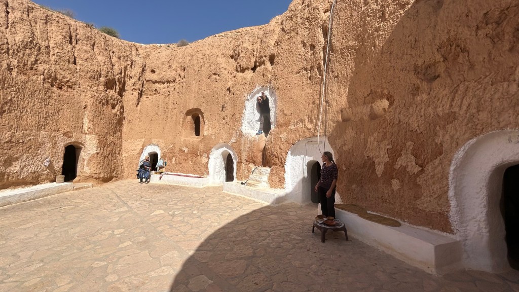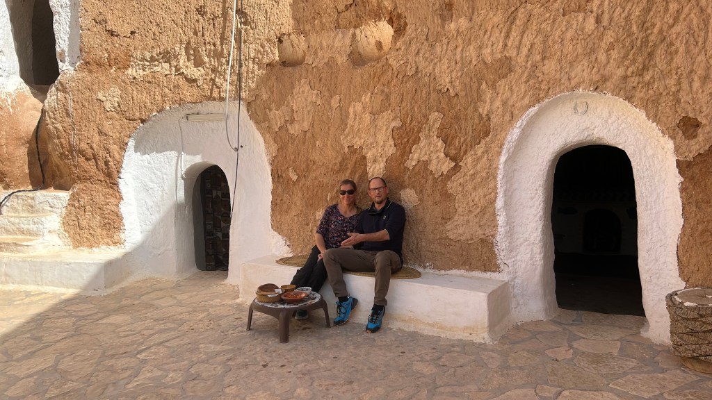 Am Abend fanden wir dann unsere Unterkunft, die Höhle. Sie befand sich auf dem Land in der Nähe des Wüstendorfes Ghurmassen. Eine lustige Unterkunft… Schliesslich durfte auch Hakim dort übernachten, denn es hatte zwei Zimmer. Am nächsten Morgen traten wir den Heimweg an und besuchten ein weiteres Berberdorf Matmata. Dort durften wir eine schöne Berberhöhle besuchen, und wurden mit einem Wüstenzmittag verwöhnt, Fladenbrot und Eintopf. Wenn man die orientalische Kultur nicht scheut, ja, dann ist Tunesien sehr empfehlenswert. Viele Segler überwintern in Yasmine Hammamet, es ist günstig und sicher.