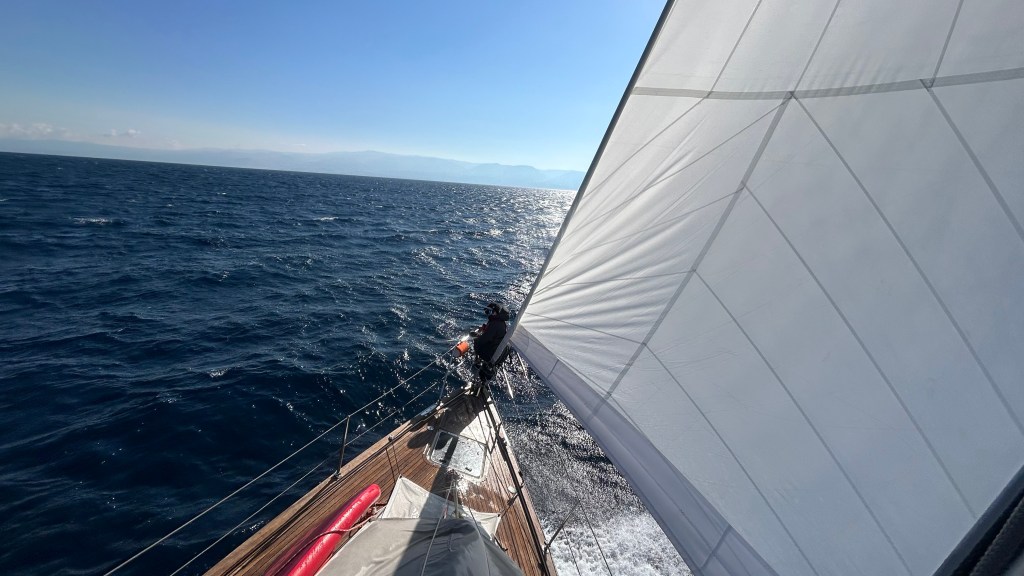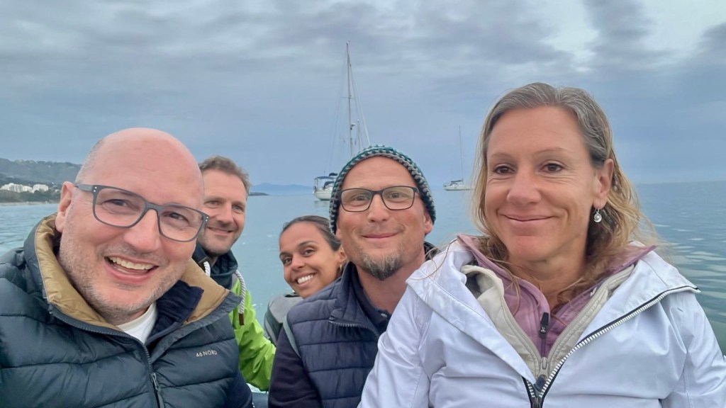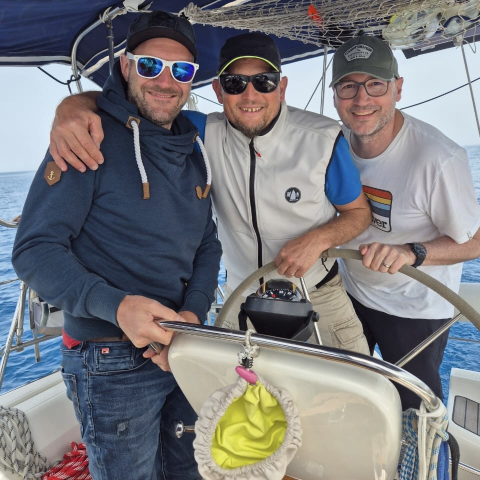 Auf dem zweiten Törn war Christoph, Matthias‘ Bruder, Lukas und Camis zu Besuch. Lukas ist Matthias‘ Freund, der damals 2018 Olivias Telefonnummer an Matthias weiterleitete, weil er sich dachte, vielleicht würde das noch passen! Und siehe da, es passte…