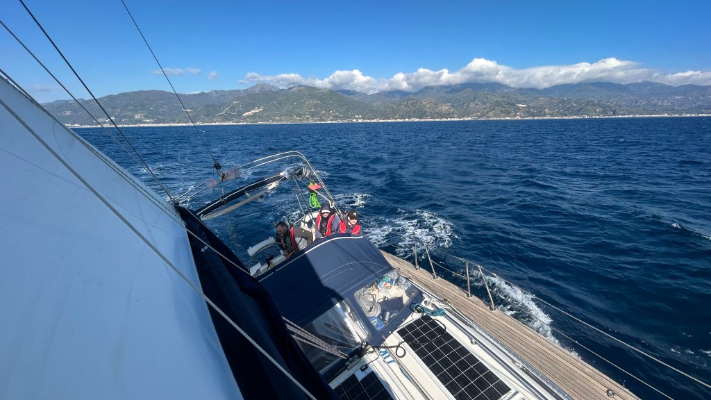 Erster Törn in Sizilien mit Familie Truttmann: Von Catania durch die Strasse von Messina zu den Liparischen Vulkaninseln nach Cefalù Sizilien.