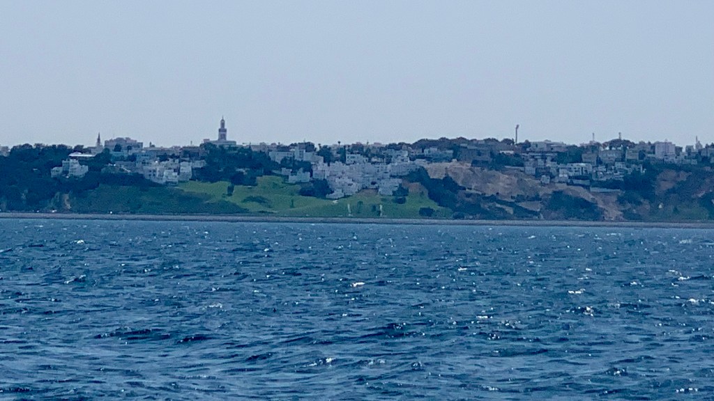 Nachdem wir Thierry auf den Flughafen gebracht haben, machen wir uns sofort bereit für die Überfahr auf die Kanaren. Es wird die bisher längste für uns, wir sind noch nie eine Woche nonstop gesegelt. Es wird auch unsere anstrengendste… Nur ein Tag bleibt uns für die Vorbereitungen, denn das Wetter und der Wind ist gut, das nächste Wetterfenster könnte auf sich warten lassen. So füllen wir Dieseltank, Wasser, Essensvorräte, berechnen die Strömung durch die Strasse von Gibraltar, überprüfen das Wetter, ob es sich geändert hat, halten Orka Abschreckung wie Sand und Sender bereit, schauen, wo sie sich aufhalten, entsorgen den Abfall und melden uns schliesslich beim Hafen ab. Am Sonntag können wir pünktlich um 08.00 ablegen, es muss pünktlich sein, sonst haben wir keine Chance, die Strömung könnte uns zurück ins Mittelmeer spülen. Vom Atlantik ins Mittelmeer besteht immer ein Strom, zu diesem kommt jedoch noch die Gezeitenströmung. Addiert kann dies eine entgegengesetzte Strömung von bis 4 Knoten ergeben, wenn unser Motor 5 Knoten Geschwindigkeit hinkriegt und wir vielleicht noch Gegenwind haben, so bleiben wir stehen oder fahren rückwärts… Durch die Strasse können wir schliesslich sogar die Segel setzen und können immer über 4 Knoten Fahrt behalten. Einmal funkt uns ein Tanker an, und sichert sich ab, ob wir hinter ihm passieren können. Marokko ist bald in Sicht, Tanger liegt nach ca. 3 h hinter uns, wir atmen auf. Die Strömungsberechnung war richtig! Wir sind jetzt ganz im Atlantik. Vor Marokko macht uns bei den in der Hitze flimmernden Badestränden mit lauter Musik eine Flaute zu schaffen. Sie dauert nicht lange und nach der ersten Nacht wird der Wind nur noch stärker! Er nimmt stetig zu, dreht auf bis 36 Knoten, das sind 8 Beaufort. Dementsprechend wachsen die Wellen. Ja, wir sind jetzt halt im Atlantik… Sie bauen sich auf bis zu 3 m. Das ist schwierig zu bestimmen, doch wir haben ja Zeit und versuchen sie immer wieder mit der Höhe unseres Biminis zu vergleichen und kommen so auf die 3 m. Es gibt einzelne, die so hoch daherrollen, die meisten jedoch sind ca. 2 m gross. Mit hohen Wellen wird alles anstrengender, kochen, essen, Segel verkleinern, usw.