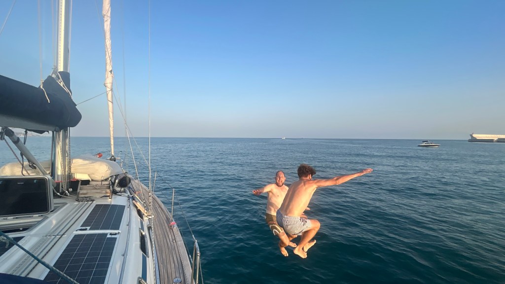 Bereits am übernächsten Tag reist Thierry, Matthias‘ Sohn an. Auch er hat sich spontan entschieden, uns zu besuchen. Wir freuen uns sehr und geniessen die Woche mit ihm ausserordentlich. Gemeinsam segeln wir von Malaga Richtung Gibraltar. Man spürt, dass Thierry sich Wind, Wellen und das Meer gewohnt ist. Das Zusammensein mit ihm ist äusserst wertvoll. Lange haben sich Vater und Sohn nicht gesehen. Endlich gibt es viel Zeit für Gespräche, Geplauder, Diskussionen, Ideenaustausch, Witze, ernste Worte… Das Unmittelbare fehlt halt beim Telefonieren und Schreiben auf Distanz und so gemeinsam unterwegs zu sein, auch wenn es nur ein paar Tage ist, tat sehr gut. Man versteht sich einfach besser!