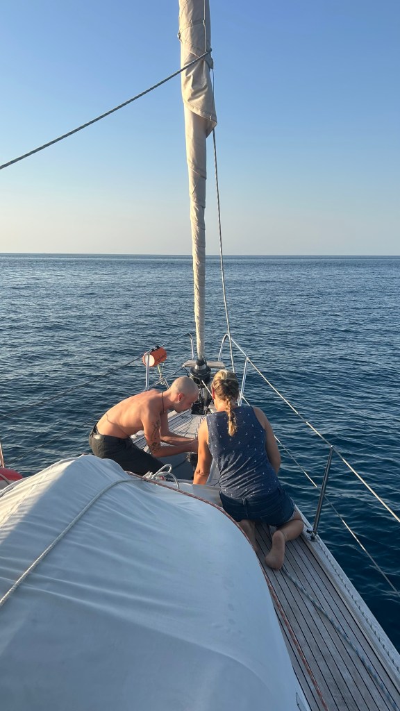 Nach dem letzten gemeinsamen Abend mit Markus und Silas, welche an Land übernachten, schwimmen wir zurück zum Schiff. Wir haben das Dinghi beim Schiff draussen gelassen, da uns der Strand bei Nacht etwas unsicher vor Diebstählen erscheint. Es ist immer ein Abwägen, es werden hin und wieder Dinghis geklaut.