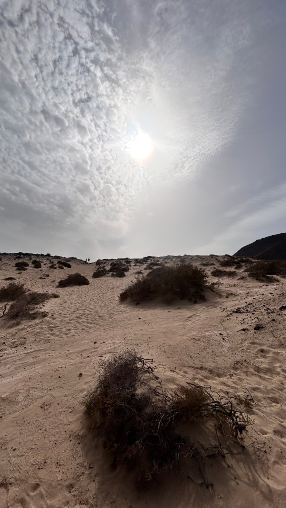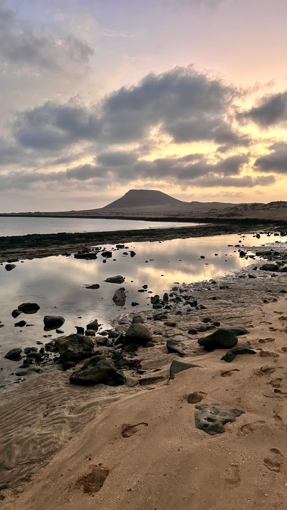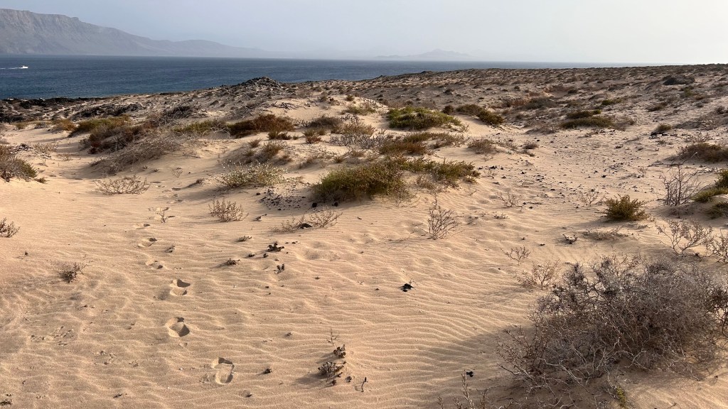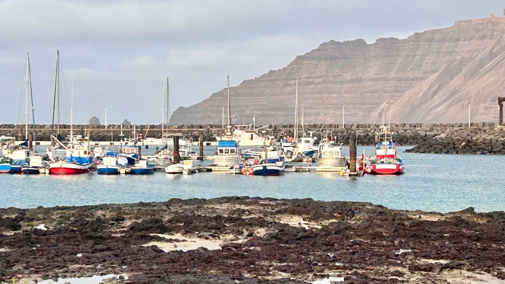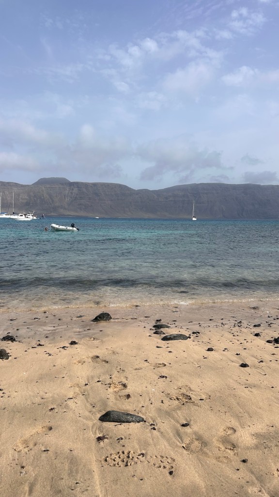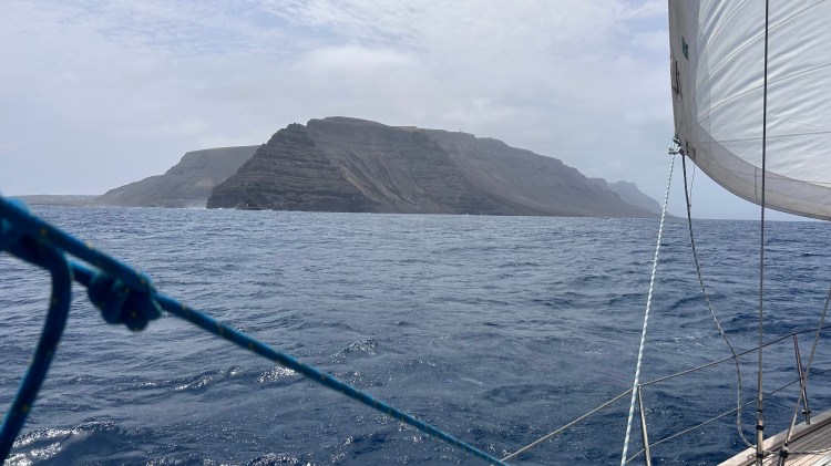 Unglaublich dankbar sind wir, als Lanzarote sich aus dem Dunst erhebt. Geschafft! Die Hochs und Tiefs einer solcher Überfahrt zu beschreiben sind schwierig, sie wechseln sich ständig ab, sind real und intensiv. So sind wir müde aber glücklich, als wir schliesslich sicher vor Anker liegen, in der wunderschönen Bucht der ebenfalls sehr schönen kleinen Insel „La Graziosa“, nördlich von Lanzarote. Ja, oft haben wir ein Gebet zum Himmel geschickt und sind dankbar für jegliche Bewahrung. Auch die Orkas bekamen wir nicht zu Gesicht, bei jedem Delfin, und es hatte viele, haben wir kurz den Atem angehalten. Orka oder Delfin? Es waren alles Delfine.